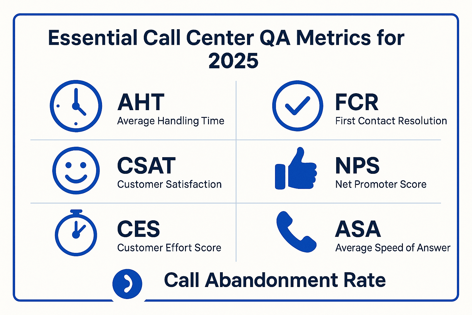 Tracking the right QA metrics is essential for measuring call center performance and ensuring high-quality CX. Below are the key call center QA metrics to focus on in 2025, along with their significance.