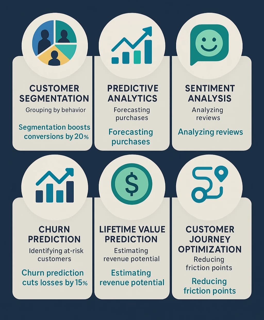 Machine learning delivers customer insights through several powerful applications, each addressing specific CX needs and driving measurable outcomes.