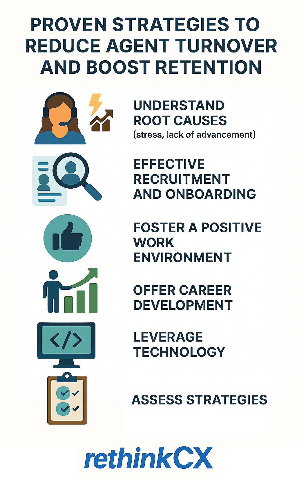 Reducing agent turnover requires a comprehensive approach: understanding root causes, refining recruitment and onboarding, fostering a positive work environment, offering career development, leveraging technology, and continuously assessing strategies. These efforts not only lower attrition but also enhance employee satisfaction, operational efficiency, and customer experiences. By implementing contact center best practices, organizations can build a motivated, loyal workforce that drives long-term success. Reflect on your current practices: What steps will your organization take today to boost retention and create a thriving team?