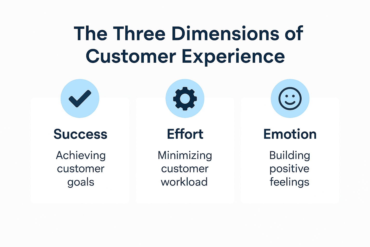 At its core, CX is influenced by three critical dimensions: Success, Effort, and Emotion. These dimensions, when addressed effectively, create a seamless and meaningful experience that resonates with customers. Success focuses on helping customers achieve their goals, Effort minimizes the work they need to put in, and Emotion fosters positive feelings during interactions. This article explores each dimension, offering actionable insights to enhance CX. For more on CX strategies, see our customer journey mapping page.