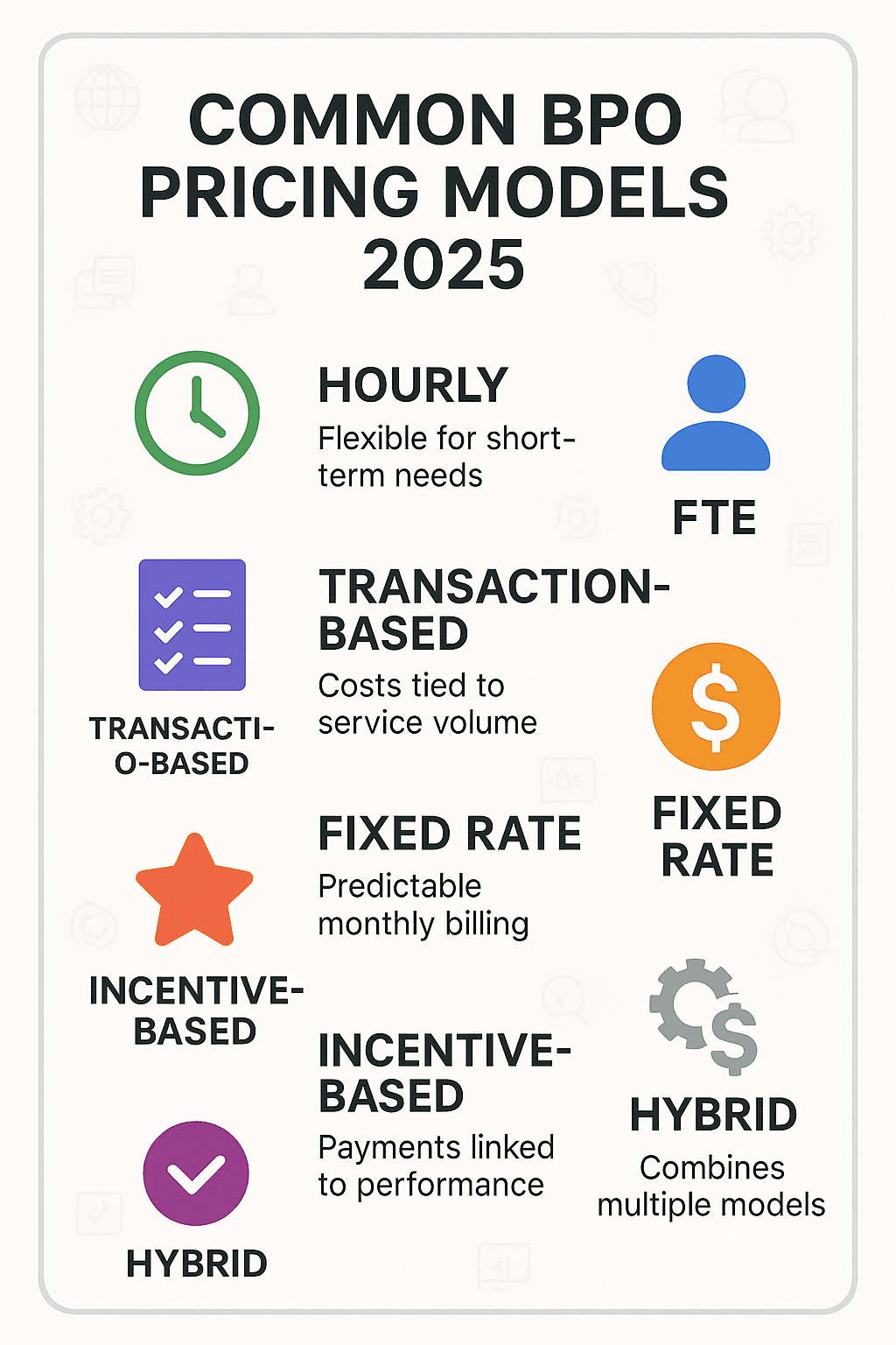 In the rapidly evolving world of business process outsourcing (BPO), selecting the right BPO pricing model is a pivotal decision that can significantly impact your outsourcing success. As companies in 2025 strive to optimize costs, improve efficiency, and scale operations, understanding outsourcing cost models has never been more crucial. The choice of a pricing strategy directly affects your return on investment, operational flexibility, and the overall relationship with your vendor. A mismatch in pricing can lead to budget overruns, inefficiencies, or strained partnerships, while the right model can unlock seamless scalability and cost savings. This guide breaks down the most common pricing strategy options—hourly, transaction-based, full-time equivalent (FTE), fixed pricing, incentive-based, and hybrid models—exploring when each is most effective for your business needs.